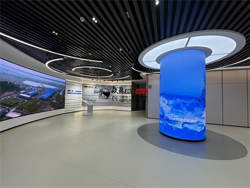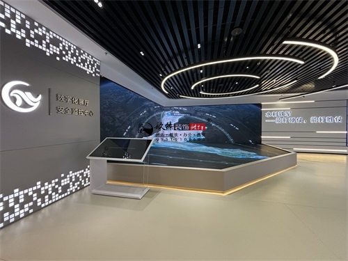今天分享的是隆德水利水电办公楼装修设计实景照片,该水利水电办公楼装修设计风格,是银川装修公司镹臻团队擅长的“科技极简风+行业主题叙事”融合设计,既贴合水利水电领域专业属性,又通过现代空间语言传递工程科技的质感,核心关键词可归纳为“沉浸式科技感、主题化场景、极简工业肌理”。从办公楼装修空间基底看,银川筑臻延续了其标志性的“极简工业风”特质——顶面采用黑色竖向金属格栅+嵌入式环形灯带,既用硬朗的工业肌理呼应水利工程的“硬核”属性,又通过流线型灯光弱化冰冷感;地面选择浅灰色哑光地坪,既保证办公空间的整洁耐用,又以低饱和色调衬托陈列物品的视觉重心。