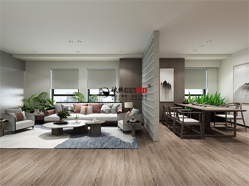 今天分享的是隆德中清餐饮集团办公室设计装修效果图,这家餐饮集团的办公室装修风格,将现代简约美学与新中式元素巧妙融合,在呈现商务质感的同时,也赋予空间浓厚的人文温度。下文将从空间布局、材质运用、色彩搭配、功能分区等维度,对其设计亮点展开分析。单就空间布局而言,整体设计通透且富有灵动性,功能分区清晰明确,采用“开放式+半开放式”结合的规划逻辑。入口处的大理石立柱不仅成为视觉核心,在划分区域的同时,也确保了空间的通透感;办公区中部的格栅隔断,则巧妙分隔休闲区与洽谈区,既维持了办公室空间的整体连贯性,又借助虚实对比营造出丰富层次,精准匹配现代办公场景下“互动交流与独立办公”的双重需求。