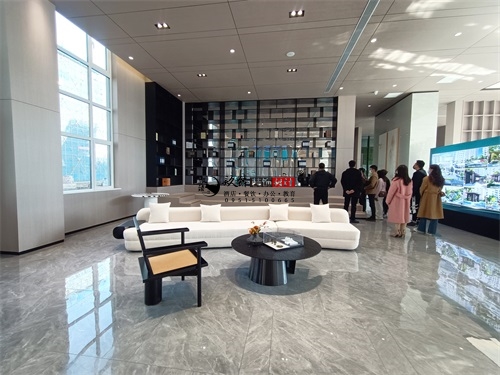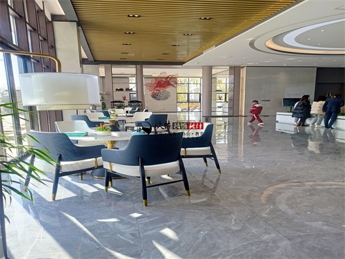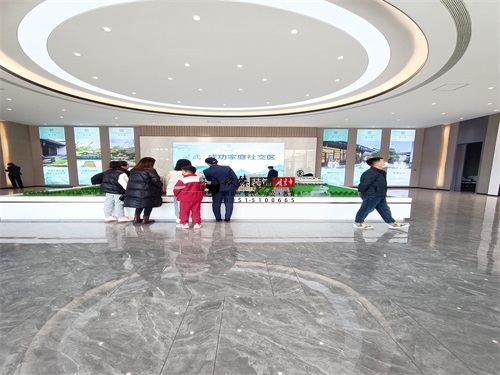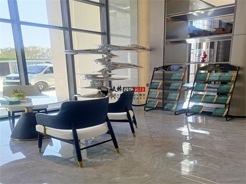 今天分享的是隆德熙玉园售楼部大厅装修项目实景图分享。售楼部大厅内的家具选择极具设计感,如弧形白色沙发,造型流畅且材质,搭配黑色金属质感的圆形茶几,形成“黑白灰”经典轻奢配色,既显时尚又不失稳重。地面采用的是大规格灰色大理石瓷砖,通过高光工艺呈现出强烈的镜面反射效果,既延伸了空间视觉感,又传递出高端、精致的奢华气质,整体而言,该售楼部以现代轻奢风为基调,通过材质、家具、艺术装置的精心搭配,打造出既高端大气又富有艺术感的空间,既能吸引客户目光,又能传递出项目的品质定位,是现代售楼部设计中“形象展示+体验感营造”的优质范例。